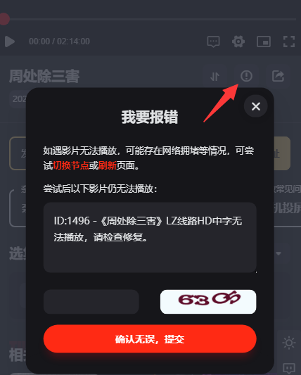 2、点击页面的反馈按钮请求管理员进行影片修复;